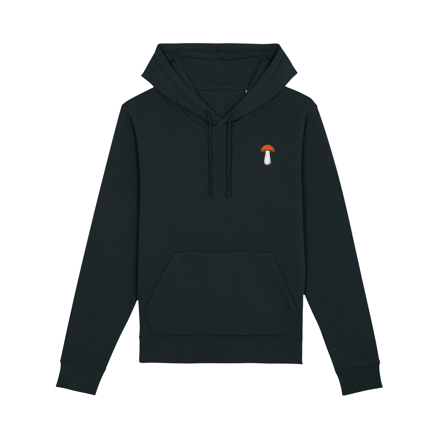Czarna bluza z kapturem z nowej serii Basic to idealna propozycja nie tylko dla miłośników grzybobrania, ale też wszystkich, którzy cenią wygodę, prostotę i unikalny styl. Na prawej piersi znajduje się subtelny nadruk przedstawiający jeden z siedmiu najpopularniejszych grzybów w polskich lasach: kanię, koźlarza, kurkę, muchomora, prawdziwka, rydza lub smardza. Każdy model z serii wyróżnia się innym grzybkiem – wybierz swojego ulubionego towarzysza leśnych wędrówek.