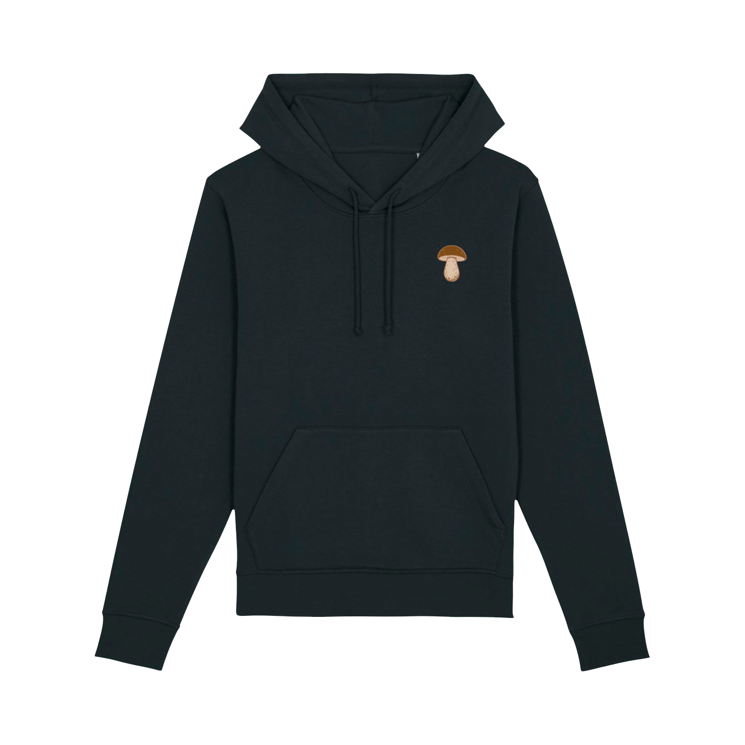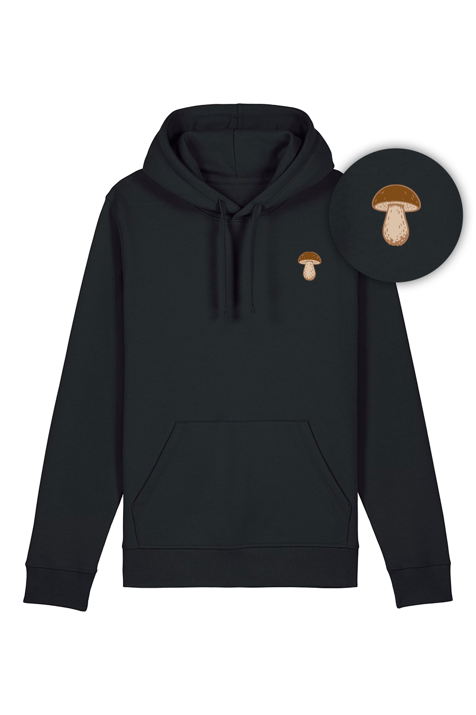 Czarna bluza z kapturem z nowej serii Basic to idealna propozycja nie tylko dla miłośników grzybobrania, ale też wszystkich, którzy cenią wygodę, prostotę i unikalny styl. Na prawej piersi znajduje się subtelny nadruk przedstawiający jeden z siedmiu najpopularniejszych grzybów w polskich lasach: kanię, koźlarza, kurkę, muchomora, prawdziwka, rydza lub smardza. Każdy model z serii wyróżnia się innym grzybkiem – wybierz swojego ulubionego towarzysza leśnych wędrówek.