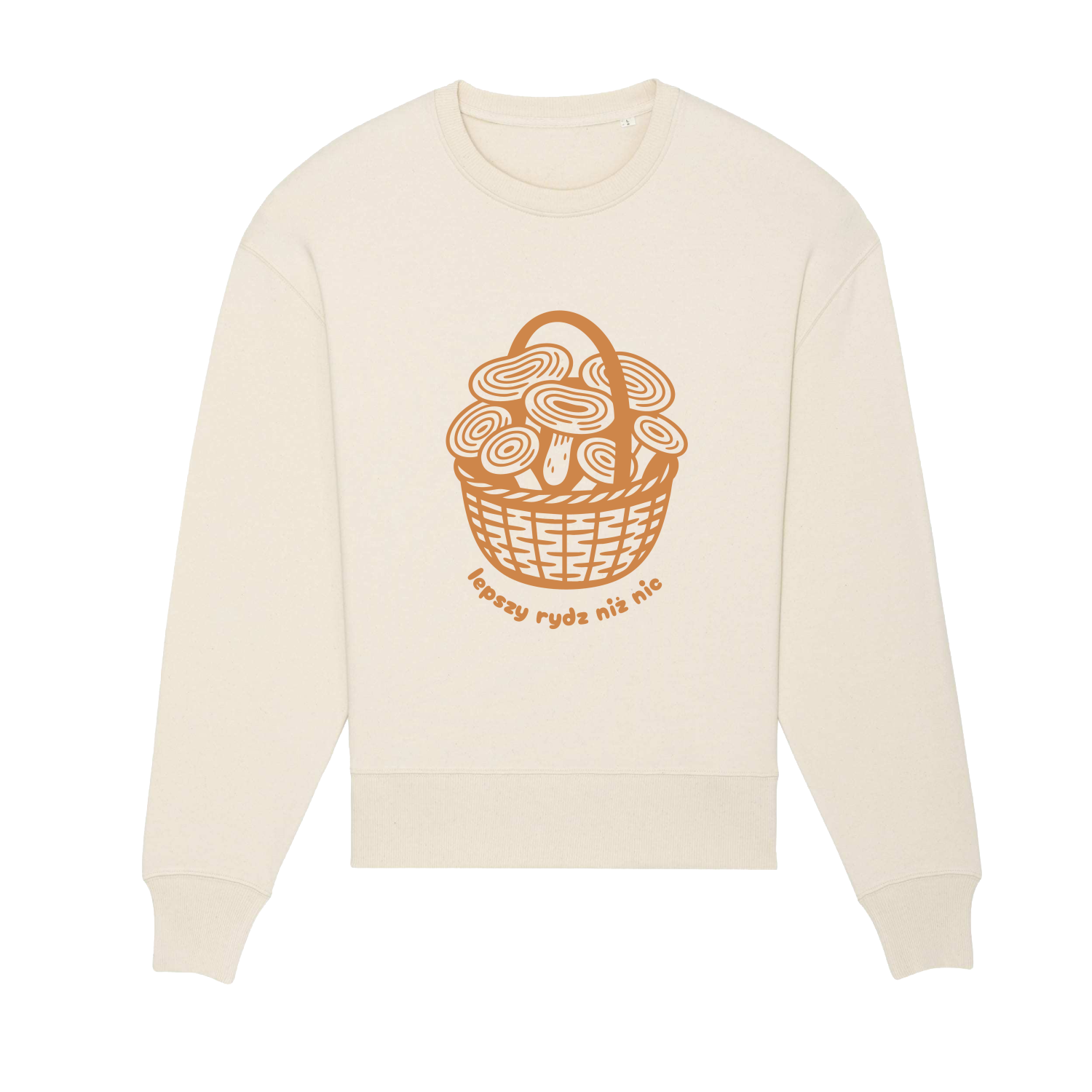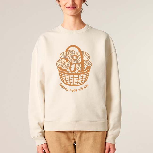 Ta bluza to hołd dla grzybiarskich wypraw i zdrowego dystansu do życia. Na przodzie znajduje się autorska grafika z koszykiem pełnym rydzów oraz przewrotnym napisem „lepszy rydz niż nic” – dla tych, którzy wiedzą, że radość tkwi w prostych rzeczach. Niezależnie, czy wracasz z lasu po udanym grzybobraniu, czy po prostu szukasz wygodnej bluzy na co dzień – ten model sprawdzi się idealnie.