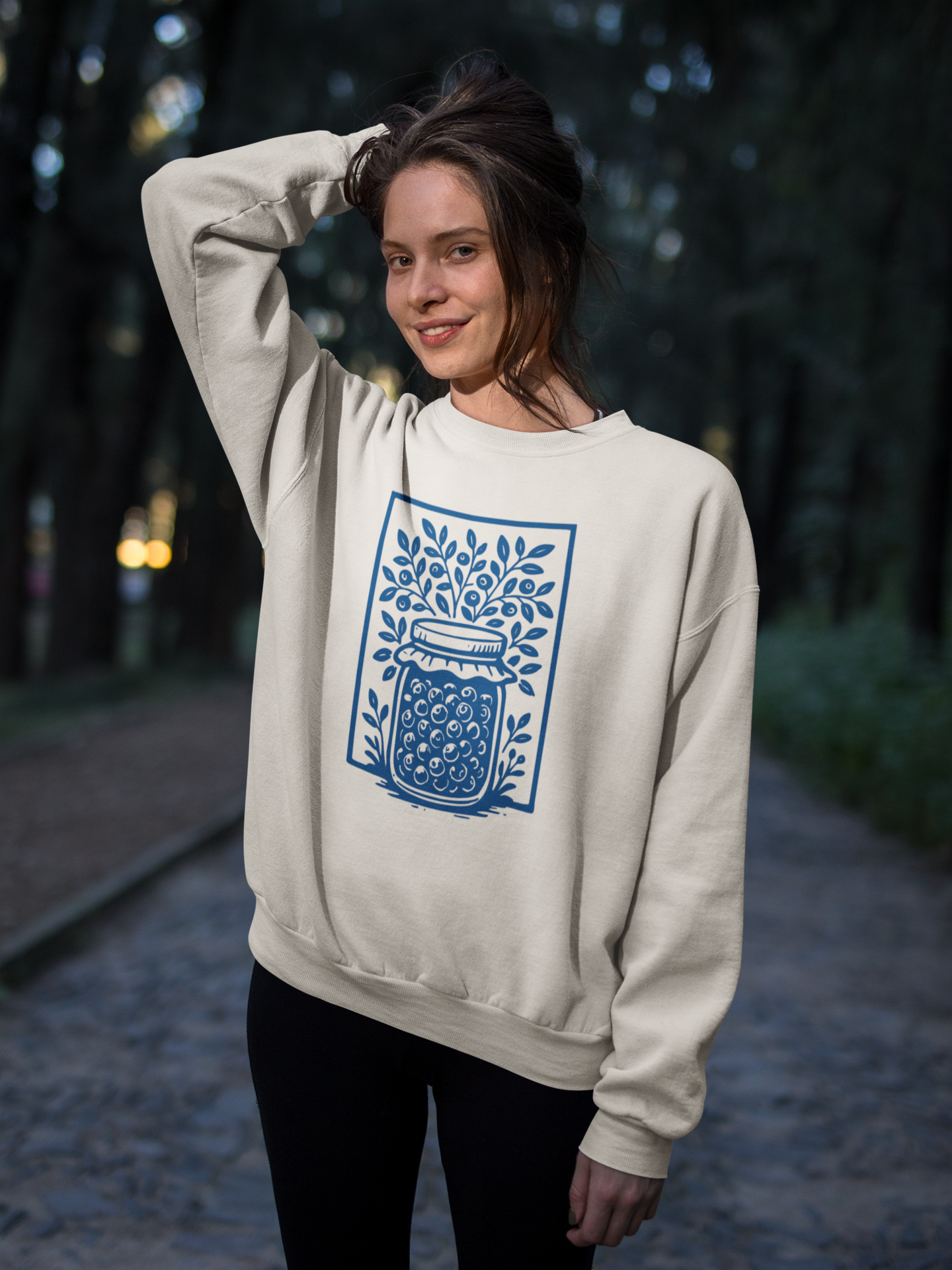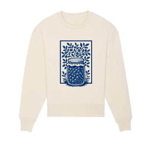 Pełen słoik leśnych jagód zamknięty w ramce – jak kadr z wakacyjnych wspomnień pachnących lasem, słońcem i dzieciństwem. Ta bluza oversize to nie tylko ukłon w stronę natury, ale i subtelne mrugnięcie okiem do tych, którzy znają odwieczny dylemat: "u Ciebie mówi się jagody czy borówki?"