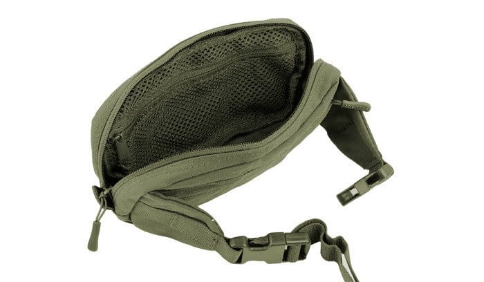 Wygodna mała torba sprawdzi się doskonale do transportowania niezbędnych przedmiotów, takich jak portfel, klucze, latarka, scyzoryk czy multitool.Nerka Fanny Pack posiada aż trzy zamykane zamkami błyskawicznymi kieszenie. Główna komora z dwukierunkowym zamkiem ułatwia dostęp do zawartości, a dodatkowa wewnętrzna kieszeń z siatki pozwala na lepszą organizację przenoszonych rzeczy.