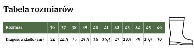 Długość wkładki oraz kalosza może różnić się o około 0,5 cm